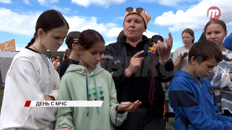 Сотрудники МЧС организовали "День Безопасности" для ребят из детских лагерей. Их познакомили с работой поисково-спасательного отряда и даже показали снаряжение и пожарную технику.