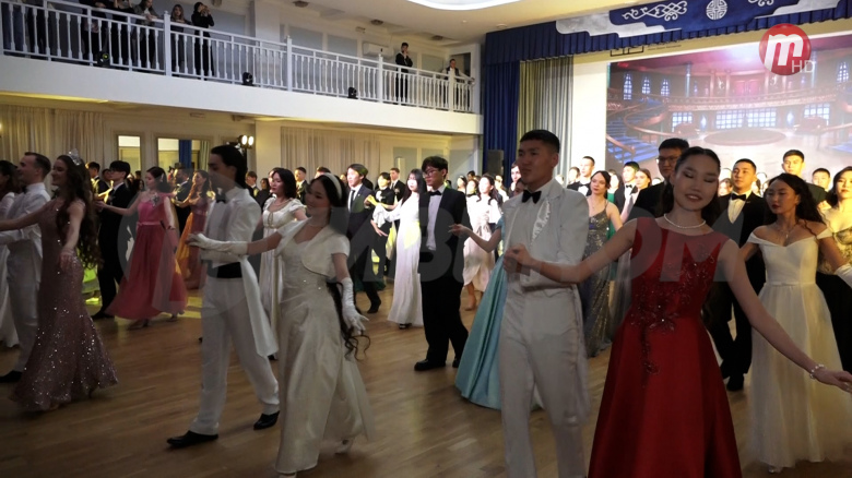 75 пар открыли бал торжественным менуэтом. В центре внимания - главные герои вечера - выдающиеся студенты вузов, которые достигли успехов в учёбе, науке, спорте, творчестве, а также в общественной и волонтёрской деятельности.