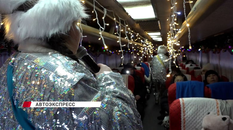 Новогодний автоэкспресс уже третий год подряд радует ребятишек не только комфортной поездкой, но интерактивными развлечениями.