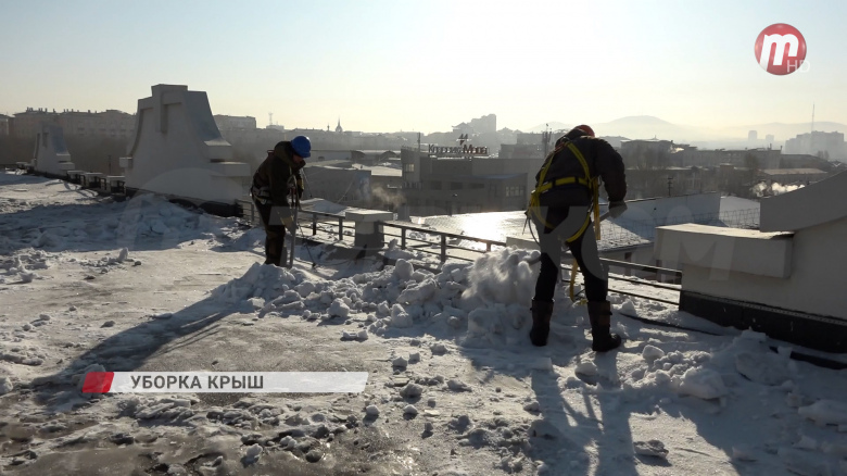 В Улан-Удэ управляющие компании очищают крыши домов от снега