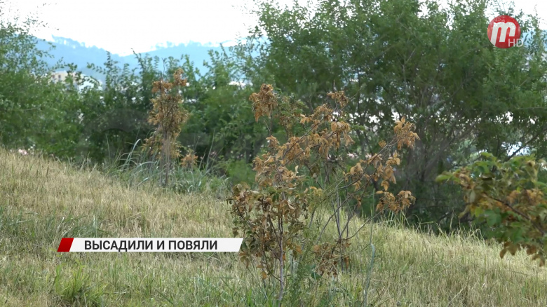 Высаженные недавно кустарники и деревья на горе Батарейной увядают прямо на глазах